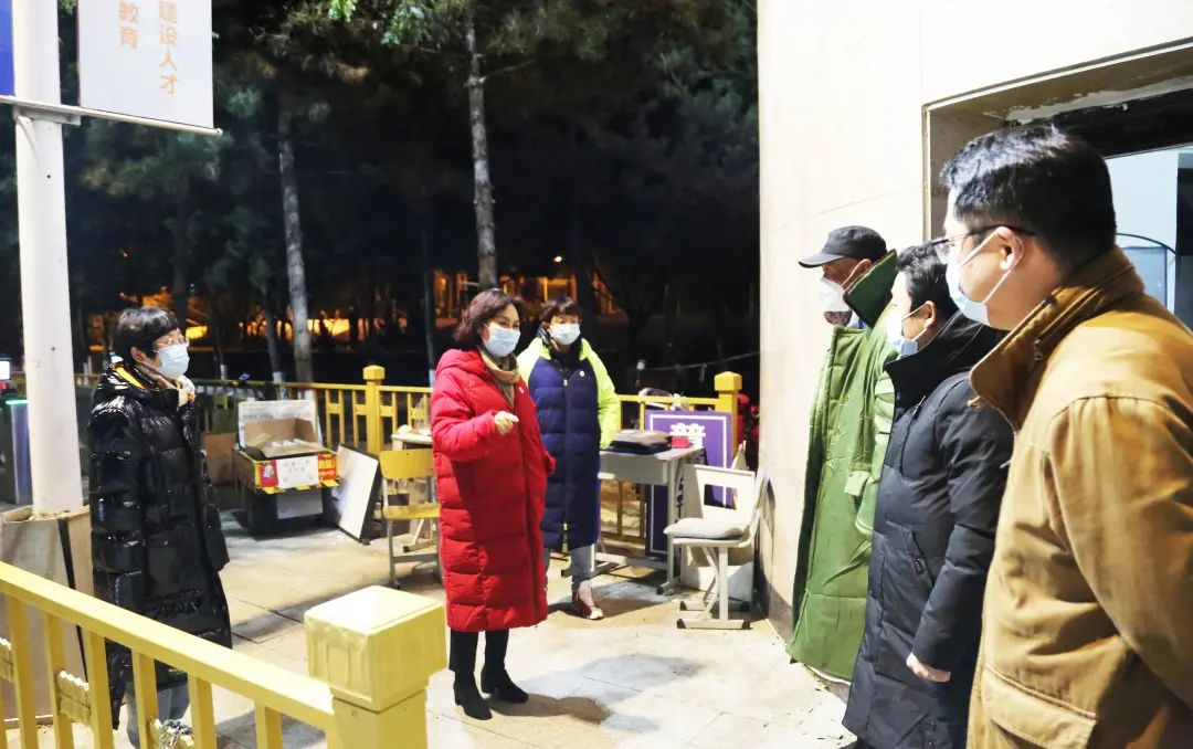 10月10日凌晨,学校党委书记李春燕夜间检查疫情防控工作。学校党委委员、副校长秦婷,学校党委委员、纪委书记刘建英陪同检查。