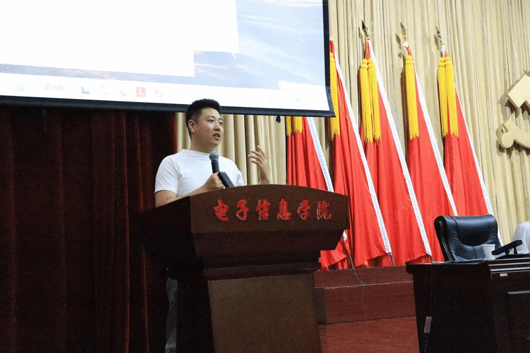 鞠敬伟作为互联网9年连续创业者,在校期间就通过自己的努力开始创业,至今是拥有16万粉丝的抖音优质电商达人和拥有18万+粉丝的快手优质内容创作者,曾任《中央电视台》数字频道企管天下栏目嘉宾,是高校就业指导师,创新创业指导师,互联网营销师,拥有30余项知识产权。会上,他以“你要学会和别人不一样”为主题,结合自己的创业经历,重点介绍了在创新创业方面的心得体会,帮助同学们绘制了创新创业的宏伟蓝图,为大家未来就业创业规划提供了宝贵的思路和方向。