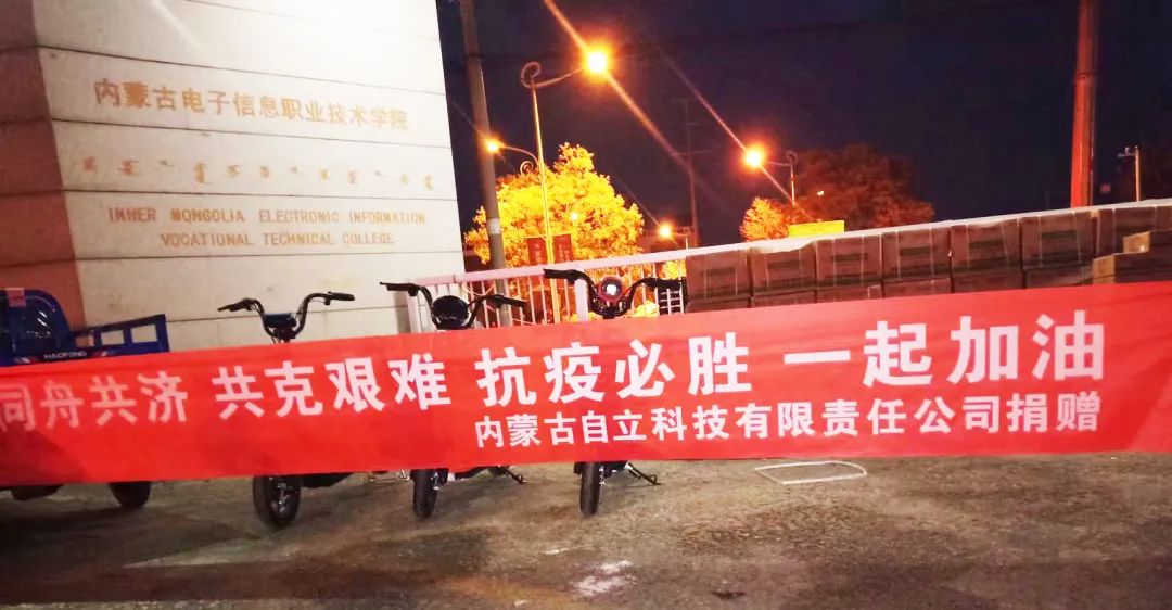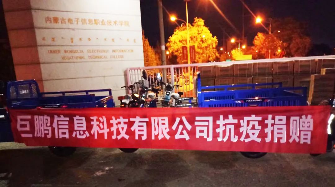 其中,华为技术有限公司内蒙古代表处捐赠电动三轮车一辆、N95口罩3000只、防护服100件,内蒙古自立科技有限责任公司捐赠电动车3辆、对讲机5部,巨鹏信息科技有限公司捐赠电动三轮车2辆。