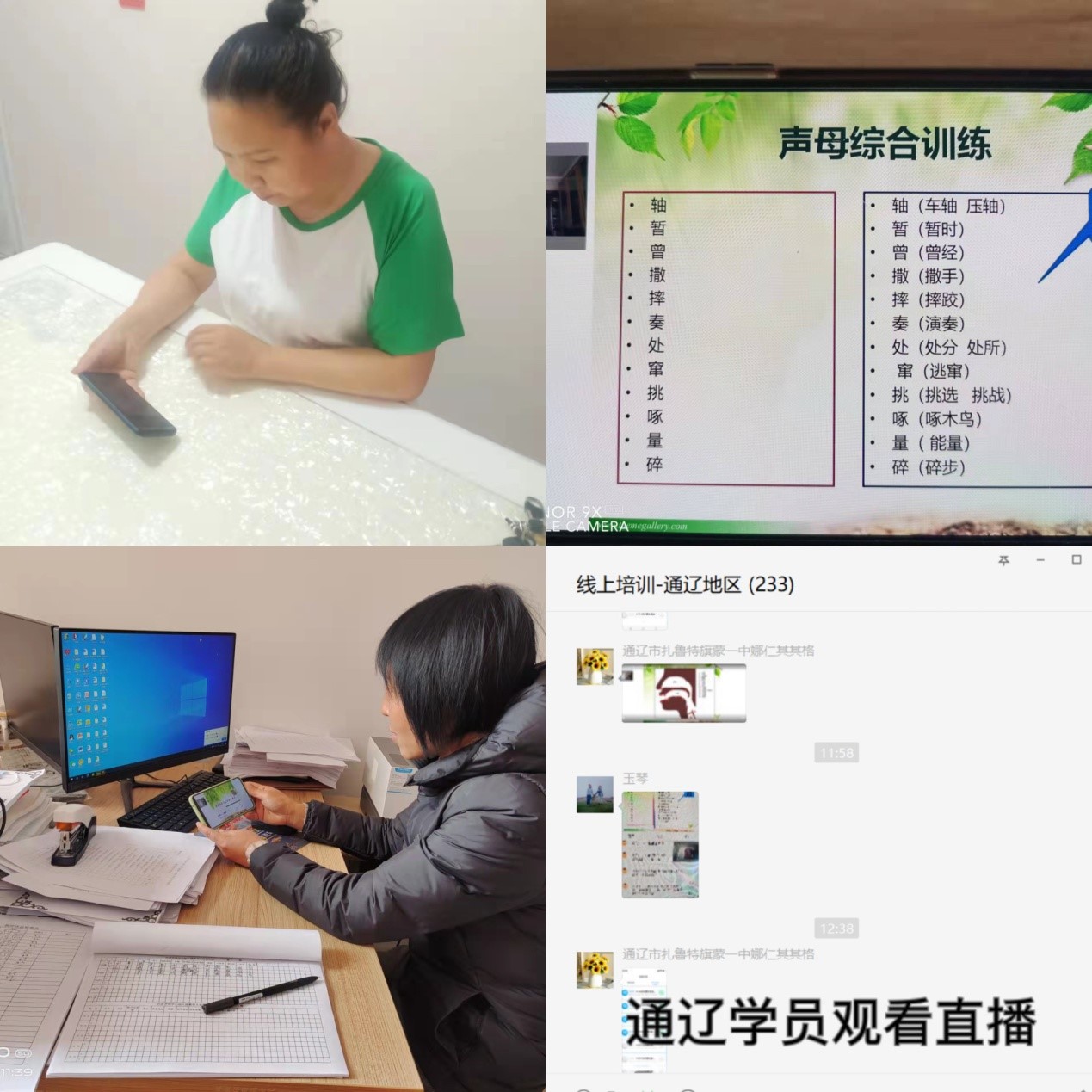 苏娅老师从普通话声母的发音原理、声母发音方法解析、声母难点音辨析及训练三个方面为参训学员进行讲解,着重讲解了声母的发音部位、发音方法和平翘舌发音的区分方法,还通过具体事例对内蒙古东西部地区方言和蒙古语中存在的发音问题进行解析。各盟市和计划单列市参训学员在网上进行了集中收看。