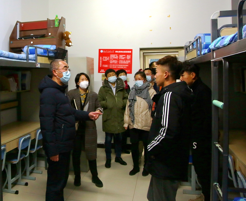 校领导一行首先来到学校北门入口处,详细询问体温检测情况,查看了检测设备,了解学校出入管理,肯定了值班人员认真负责的工作态度。在培训公寓、学生公寓,校领导一行详细询问学生是否会使用紫外线灯进行消毒等,并要求后勤管理处务必做好因发热隔离学生的管理、服务和生活保障,把学生的身体健康和生命安全放到首位,主要负责人要坚守岗位、党员发挥模范作用、做到守土有责、守土担责、守土尽责、扎实有效地落实疫情防控工作。