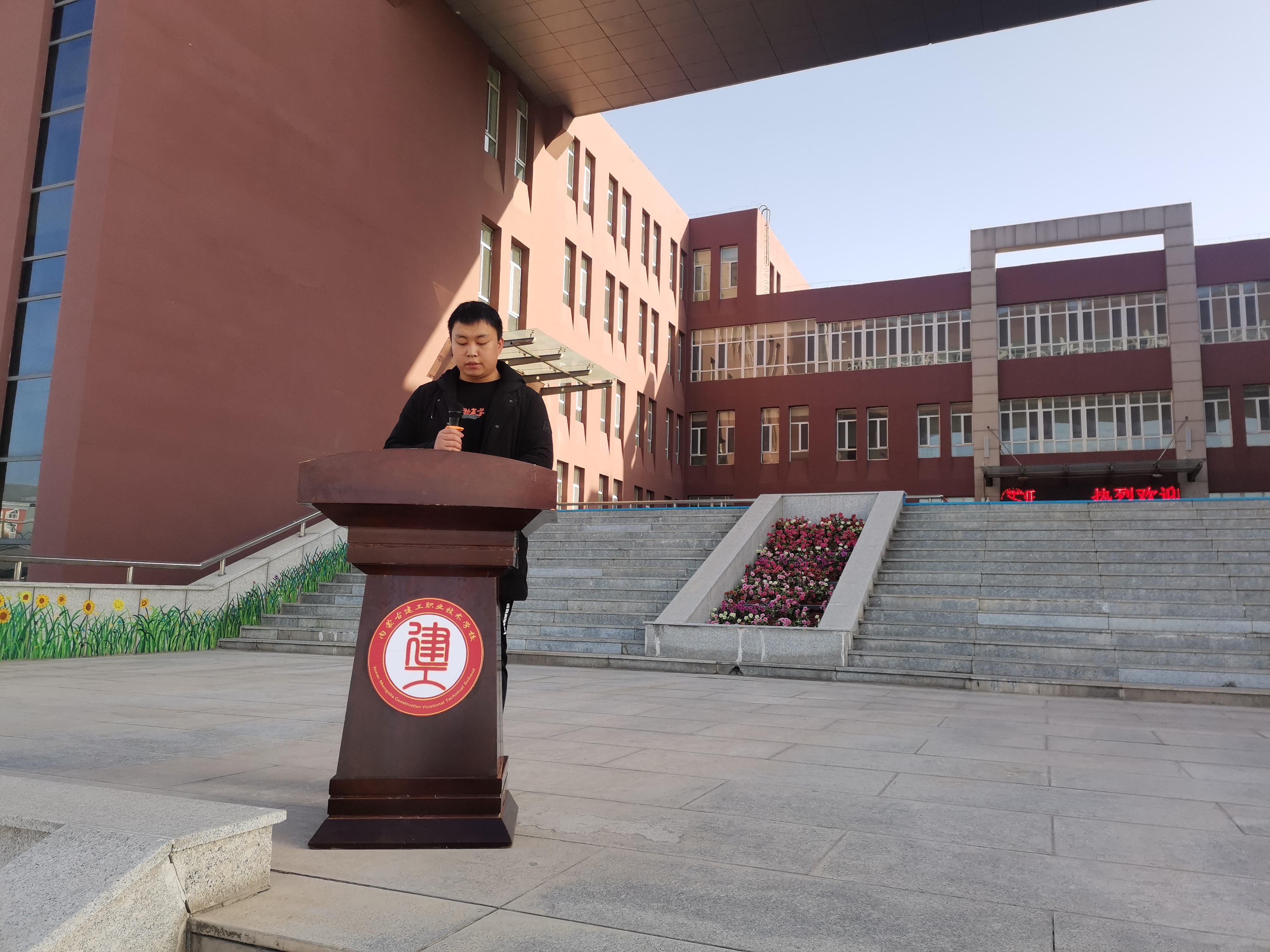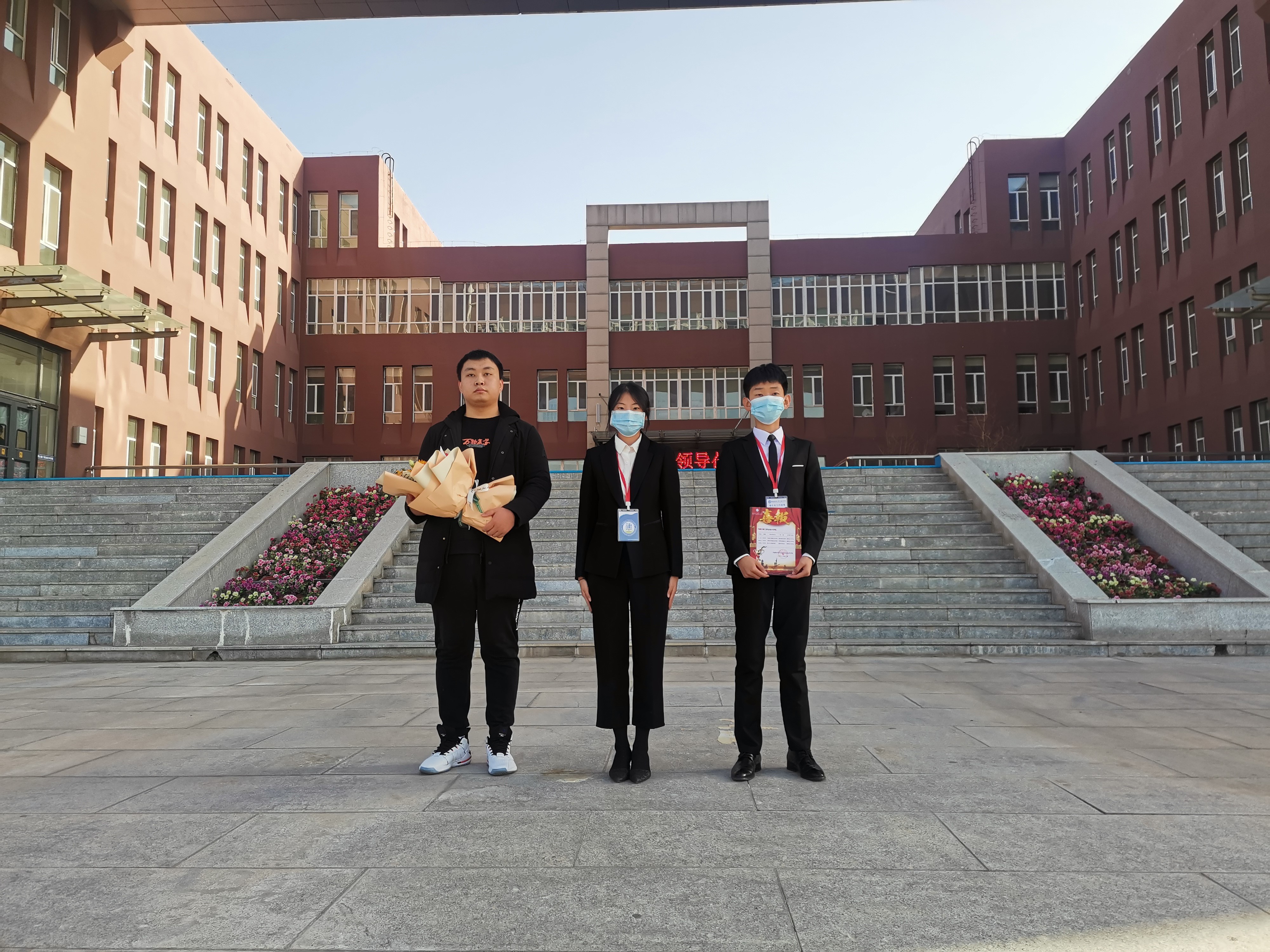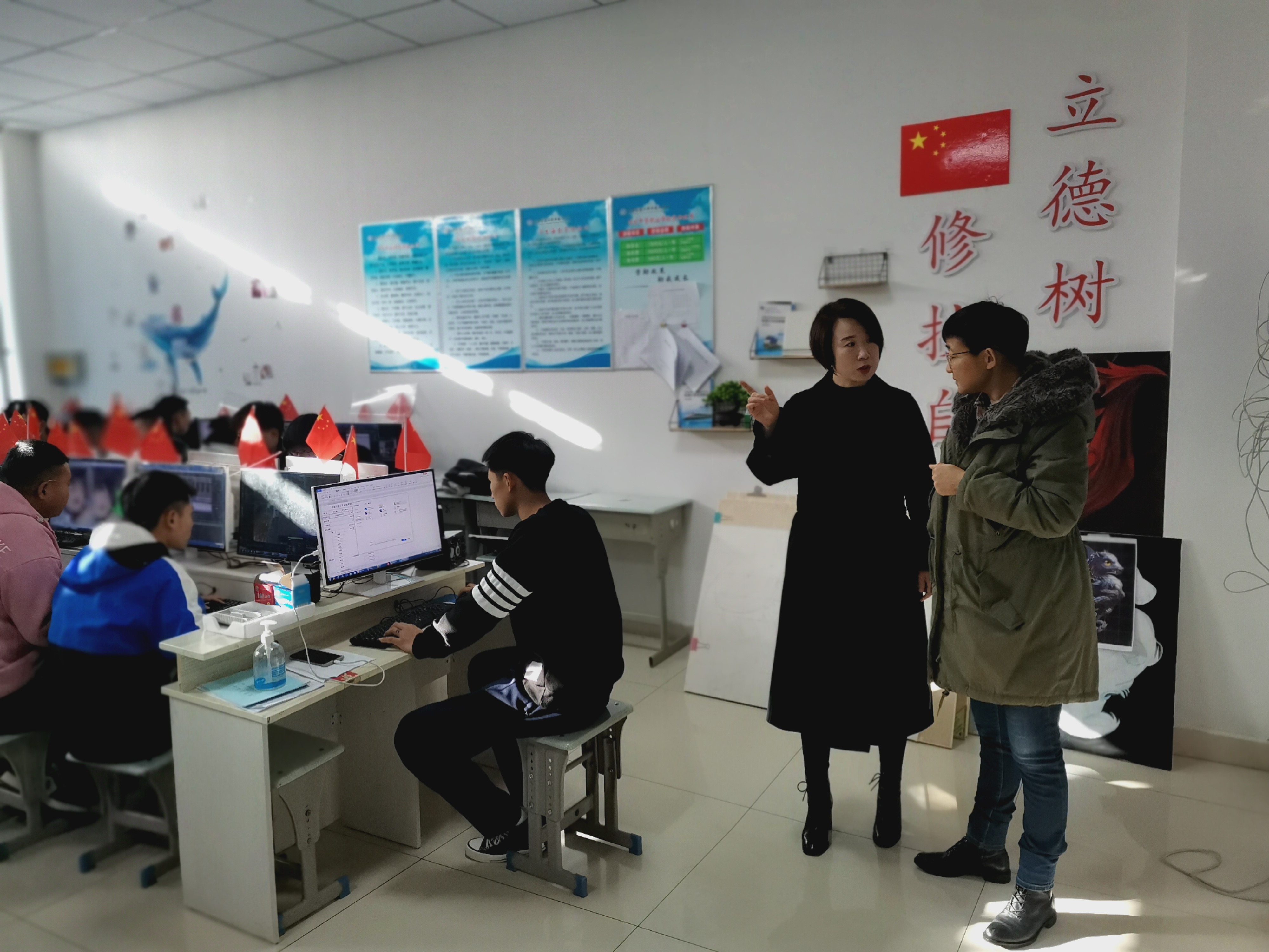首先,秦婷一行在内蒙古建工职业技术学校校长史海祥、副校长张朝霞、副校长张丽霞、招生就业处处长郝体俊等领导的热情陪同下参观了学生餐厅、宿舍、教室、实训室、社团活动室等。上午10点全体调研人员参加了在我校就读的建工学校优秀学生向母校赠送喜报仪式,动漫193班张海博代表在我院就读的学生表达了对母校的感谢,然后电子与自动化学院党总支副书记石磊向建工全体学生做了无人机专业介绍、数媒与艺术设计学院副院长武迪做了动漫专业介绍。