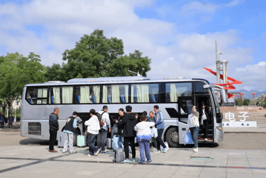 大巴车循环往返于学校和车站、机场