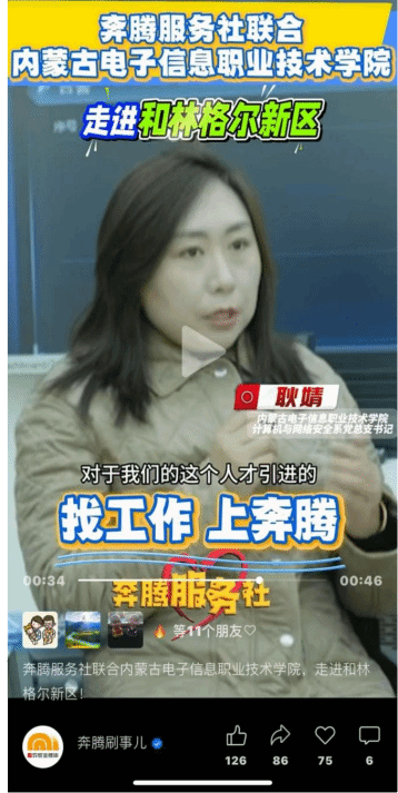 活动聚焦毕业生不同需求,为毕业生带来了多样化的就业选择。特邀呼和浩特市人力资源和社会保障局专家在线解读“三支一扶”、创业担保贷款、就业见习等政策,为学生提供基层就业、自主创业等多路径选择。联合内蒙古广播电视台全媒体就业服务节目《奔腾服务社》,带领毕业生“云端探企”,走进和林格尔新区,深入了解新区企业规模、招聘岗位以及福利待遇,为毕业生与数字化企业招聘搭建了供需双方的精准对接桥梁。活动中创新融入“学生作品云展示”环节,通过播放学生创意视频,直观展现学生专业技能,获得招聘企业点赞。