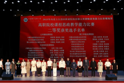 8月11日,2025年全区职业院校技能大赛课程思政教学能力比赛现场赛在兴安职业技术大学落下帷幕。我校张雪、范枻、韩潇教师团队与来自区内14所高职院校的28个团队同台竞技,凭借扎实的教学功底与创新的思政融入设计荣获文史财经类课程二等奖。