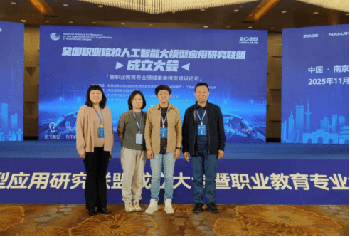 11月15日至17日,“全国职业院校人工智能大模型应用研究联盟成立大会暨职业教育专业领域垂类模型建设论坛”在南京隆重举行。学校作为职业教育专业领域垂类模型建设项目(第二批)的入选单位受邀参会。学校党委委员、副校长秦婷带队,教务处、软件与大数据系、电子商务系相关负责人一行参加联盟成立大会。