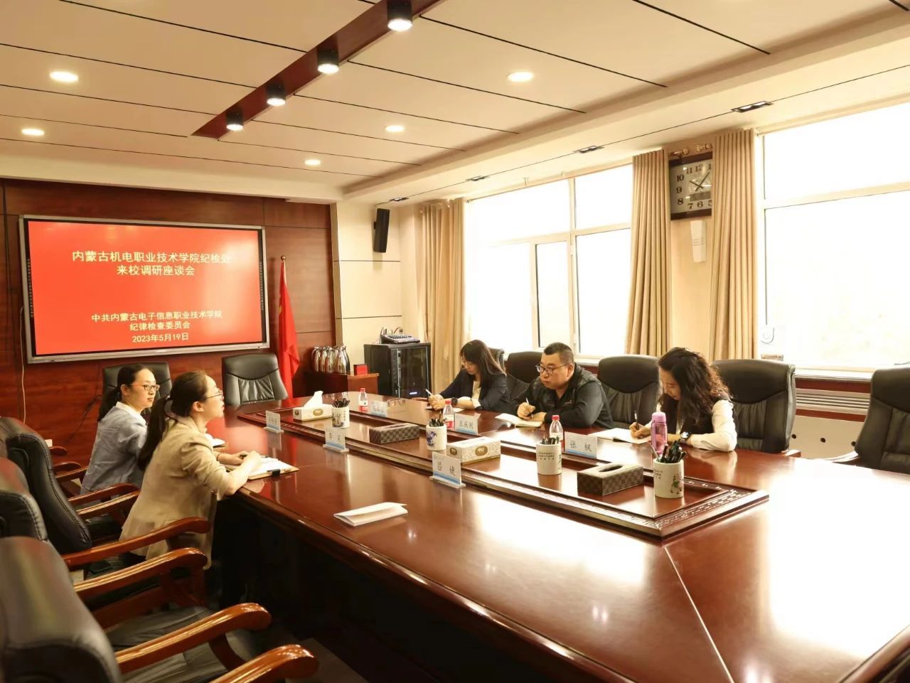 座谈会上,纪检处处长李笑介绍了学校深入推进纪检监督工作,在深化政治监督、做实日常监督、制度建设等方面的做法,重点展示了廉洁文化资源库建设成果。同时,学校的纪检干部结合深化纪检监督贯通融合,推动治理效能提升的主题教育调研方向,就廉政风险防控、纪检干部队伍建设等方面,与来访同仁进行了深入交流,听取学习了内蒙古机电职业技术学院纪检工作的经验做法。参加座谈会的纪检干部一致表示,今后要在工作方面进行经常性经验交流,进一步开阔视野、启迪工作思路,切实提升履职能力,推动学校纪检工作高质量发展。