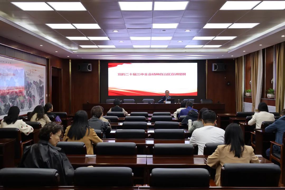 王学民围绕深刻认识党的二十届三中全会的重要意义、深入学习领会习近平总书记在党的二十届三中全会上的重要讲话精神、全面准确理解《决定》提出的进一步全面深化改革重大举措、深入贯彻落实自治区党委十一届八次全会精神,书写中国式现代化内蒙古新篇章等四个方面进行了深刻解读,结合如何将全会精神贯彻落实到学校实际工作中作了深入阐释。