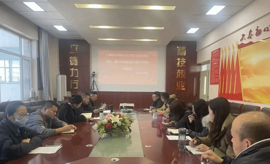 为落实学校关于2024届毕业生就业政策,更好的推进2024届毕业生就业工作,有针对性地实施就业帮扶制度,为毕业生提供更多的就业信息和就业岗位。2024年1月9日下午,计算机与网络安全学院在F310会议室召开“党建引领促就业,精心护航助成长”就业工作启动仪式,计算机与网络安全学院党总支书记耿婧、学生科长吕磊及2024届全体班主任参加此次仪式,仪式由副院长谢喆主持。