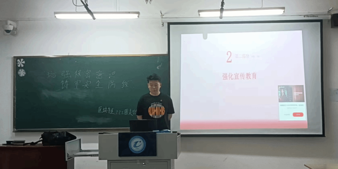 活动伊始,团支书通过保密工作公益宣传片引出此次团日活动的主题——增强保密意识 铸牢安全防线。之后向同学们介绍了保密工作的要点内容和保密工作的重要性。告诉同学们要守好安全防线,并指出保守国家秘密是每个公民的法定义务,共筑保密防线,公民人人有责。