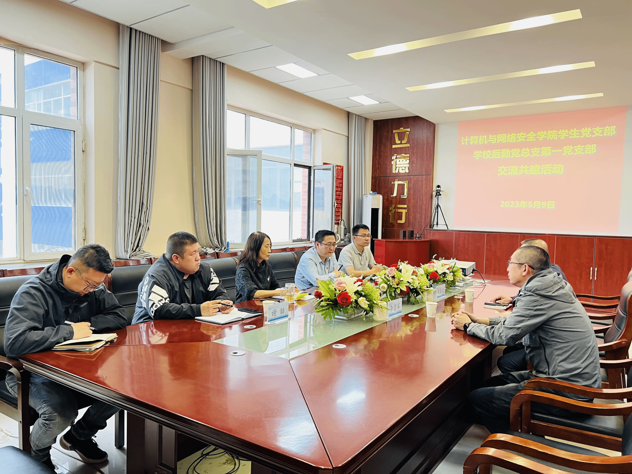 5月9日下午,计算机与网络安全学院学生党支部与学校后勤党总支第一党支部开展党建共建交流会,双方结合工作实际及党建工作做法经验进行了交流。后勤党总支第一党支部书记周春光、党员李贵军、计算机与网络安全学院党总支书记李铁衡、副书记贺栋、副院长谢喆、学生党支部委员参加会议,李铁衡主持会议。