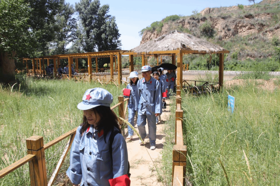 在台格斗村“杏福谷”,全体同志身着红军服“重走长征路”,沉浸式重温峥嵘岁月。在徒步行军中,大家脚步铿锵,斗志昂扬,感受红军坚韧不拔的长征精神和当今幸福生活的来之不易,在体验感悟中继承革命先烈的光荣传统,初心不改、党心永恒。