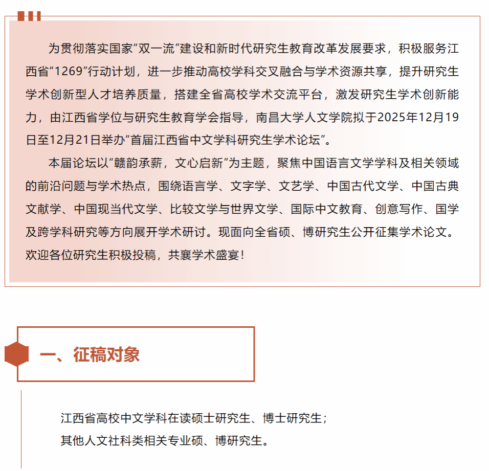 征文启事 | 首届江西省中文学科研究生学术论坛征稿启事