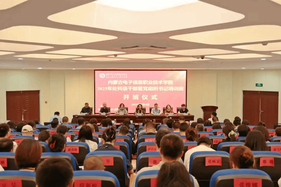 7月4日,学校2025年处科级干部暨党组织书记培训班开班。学校党委书记李春燕出席开班仪式并讲话。学校党委副书记、校长林民主持开班仪式。学校党委副书记刘建英,党委委员、副校长郑志丽、恩和门德、秦婷,党委委员、纪委书记王学民,党委委员、组织部(统战部)部长兼党政办公室主任王凤岐,党委委员、宣传部部长袁文博,内蒙古北方职业技术学院党委副书记卢会芝及党务干部参加开班仪式。