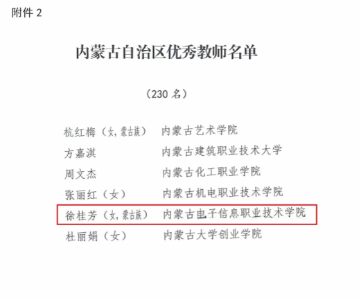 近日,2025年内蒙古自治区教育系统先进集体和先进个人表彰结果揭晓,我校通识教育教学部徐桂芳老师获评内蒙古自治区优秀教师,学生工作处张慧超老师获评内蒙古自治区优秀德育工作者。