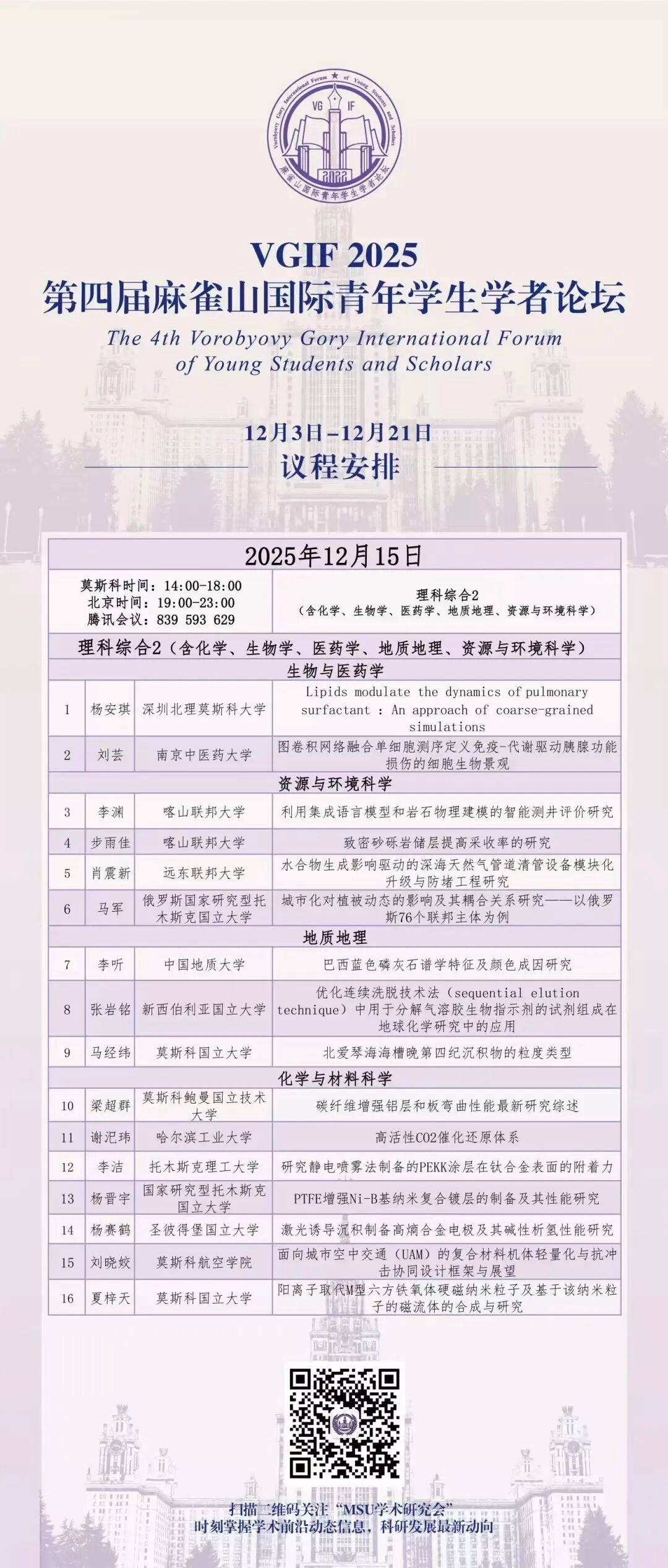 每日课表 | 12月15日学术讲座
