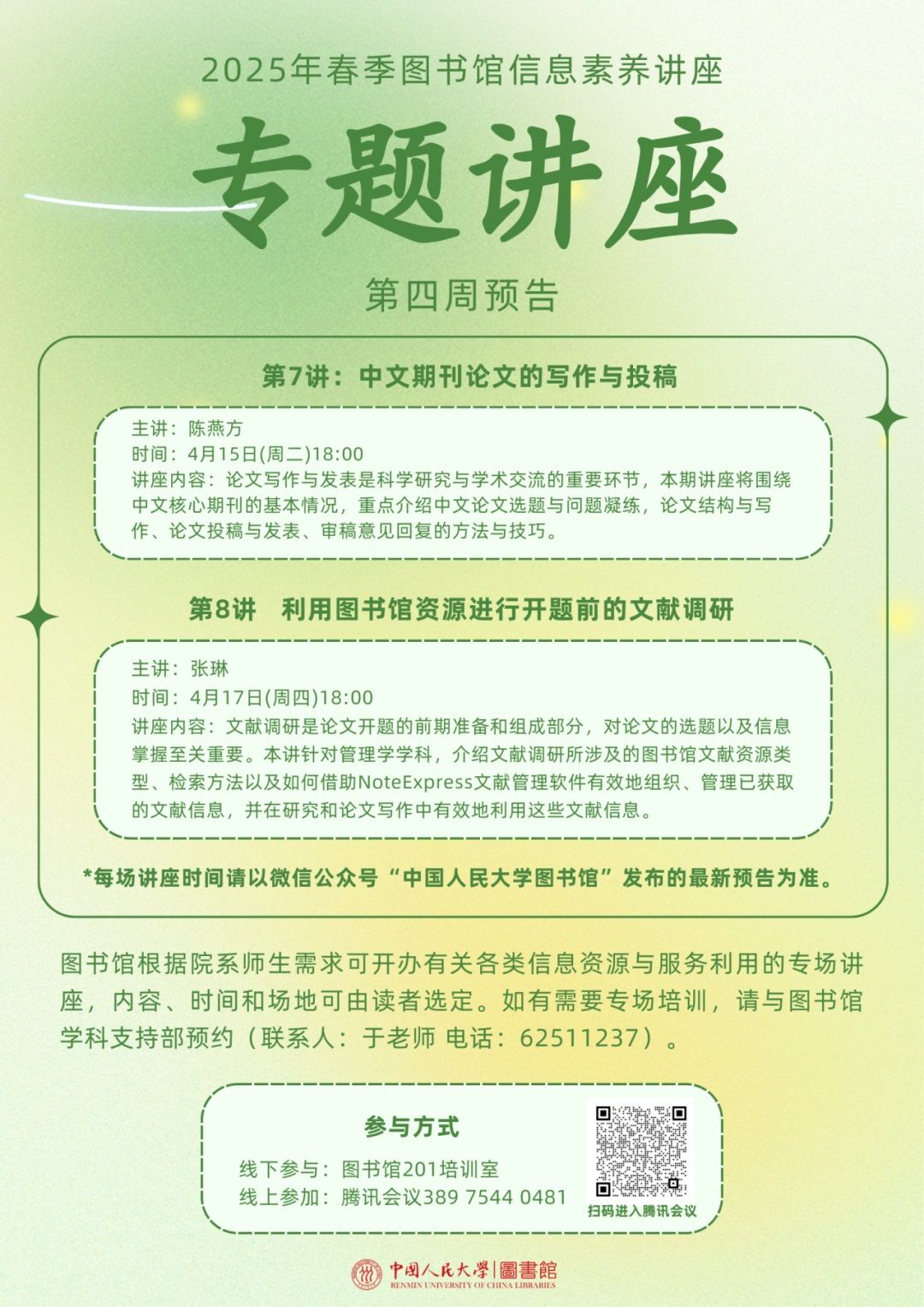 每日课表 | 4月17日学术讲座