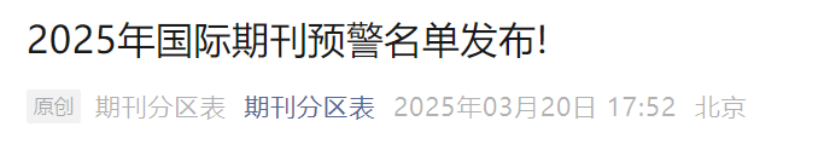 3月20日17.52分,姗姗来迟的中科院期刊分区表官方终于正式发布通告,同时发布了2025年预警名单和期刊分区表!