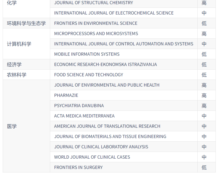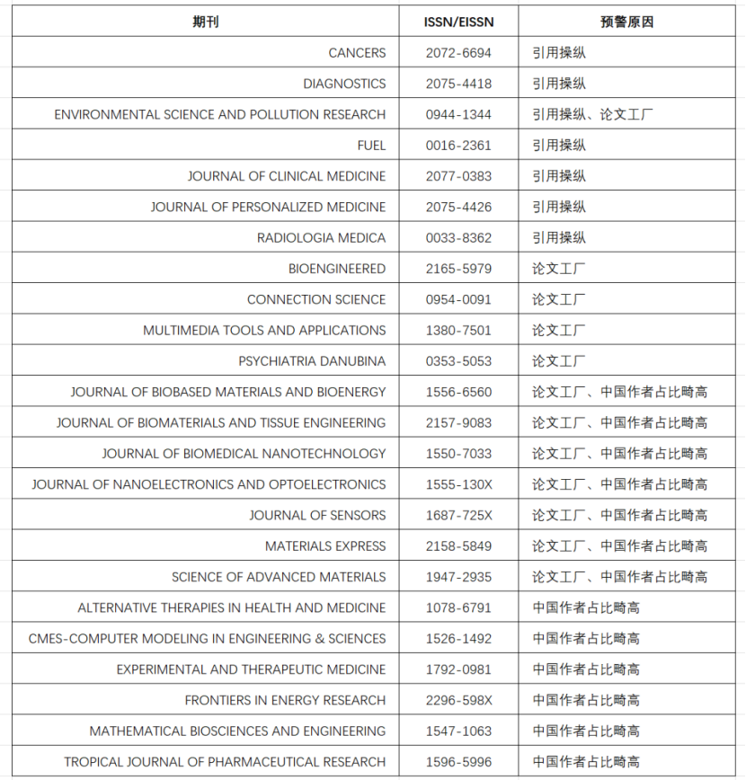 官网:https://ewl.fenqubiao.com关于2025年《国际期刊预警名单》相关说明如下:1)沿用2024年规则,不再区分预警风险等级。2)关于《国际期刊预警名单》的使用,需要特别指出得是,不应该把多年累积期刊列表合并使用。曾经进入预警名单的期刊在经过整改并取得显著成效之后,会被移出下年度预警名单,不再是预警期刊。3)期刊预警不是论文评价,更不是否定预警期刊发表的每项成果。预警期刊旨在提醒科研人员审慎选择成果发表平台、提示出版机构强化期刊质量管理。