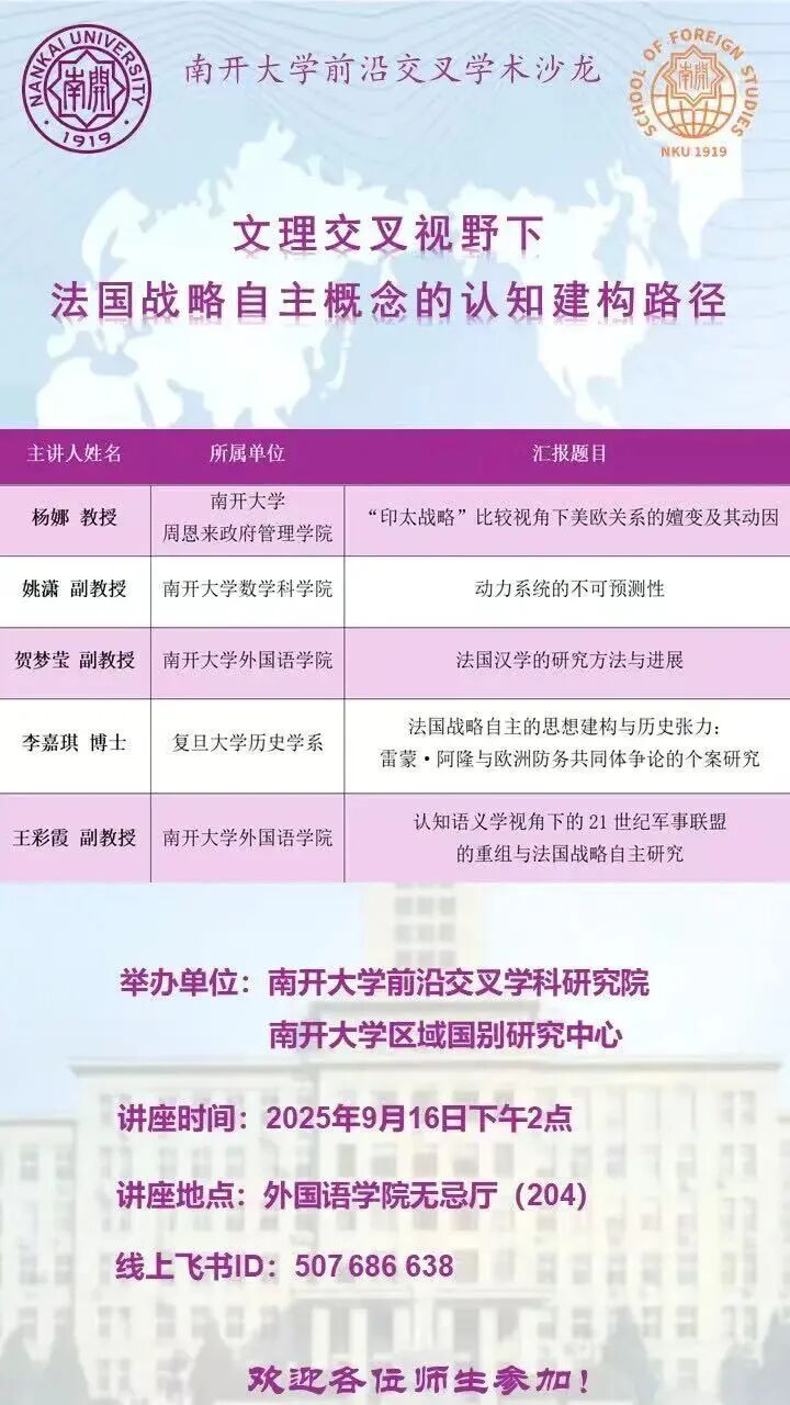 每日课表 | 9月16日学术讲座