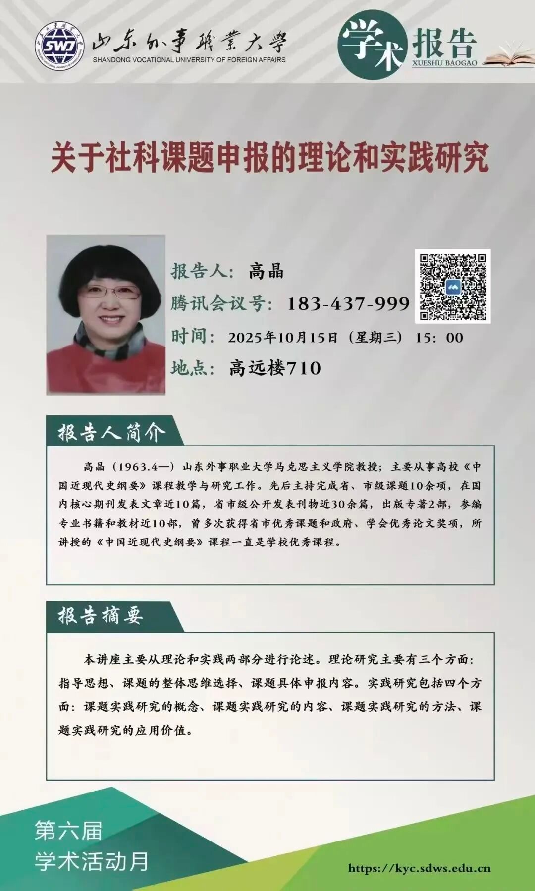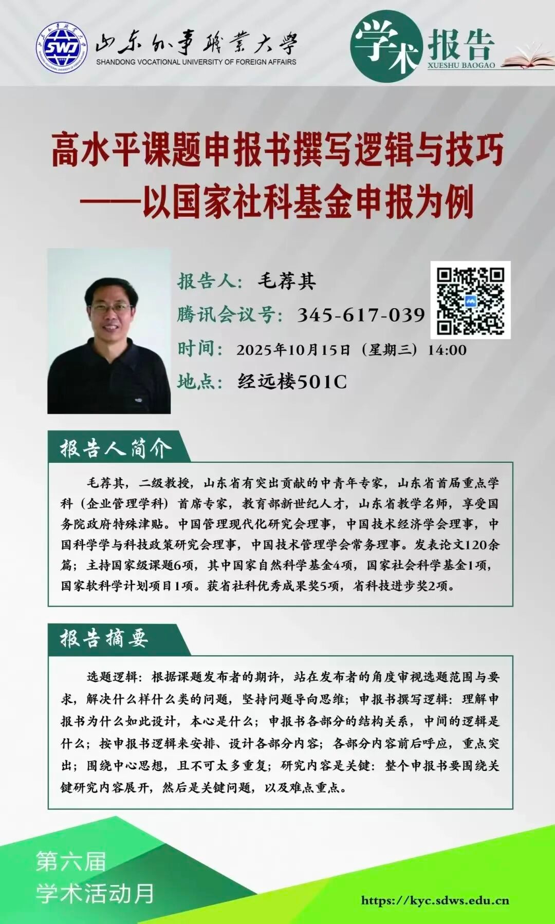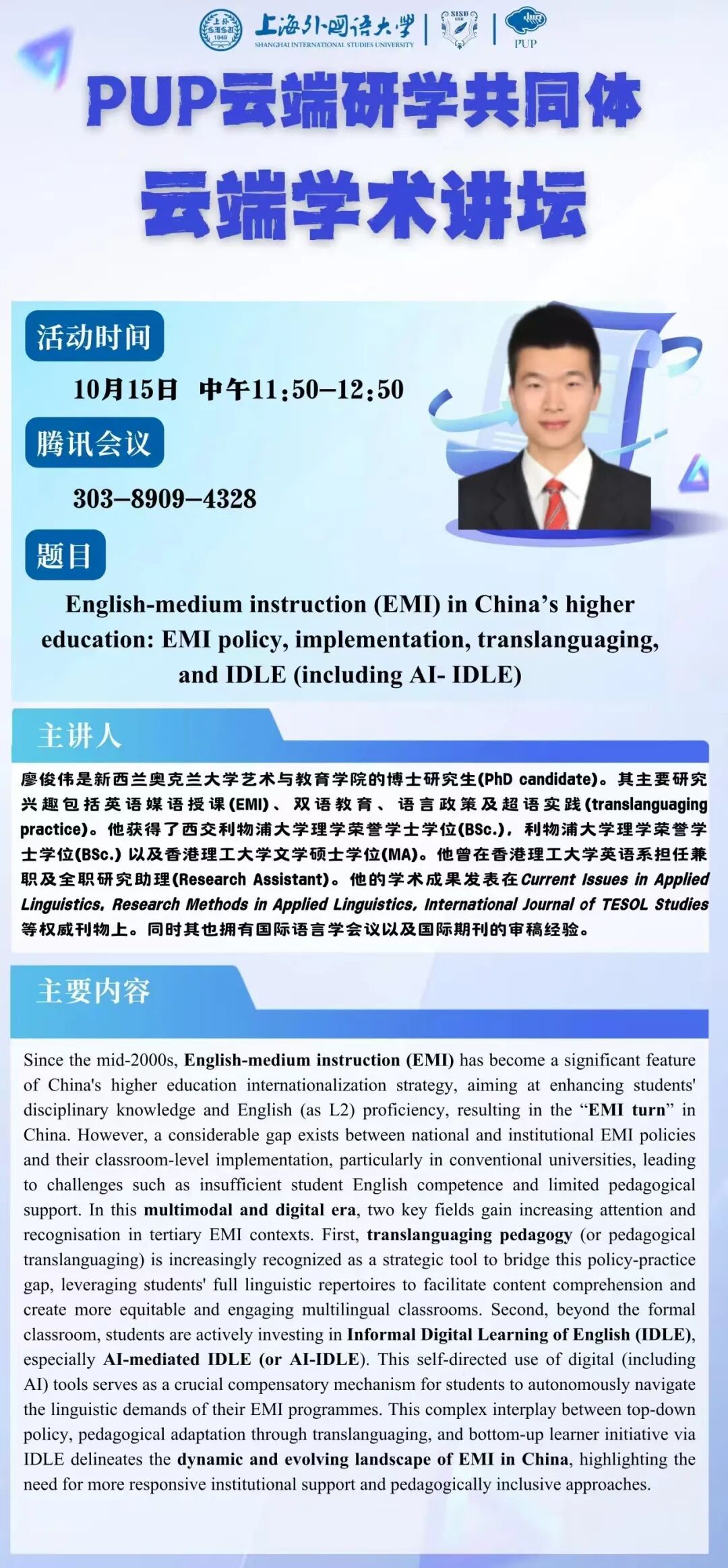 每日课表 | 10月15日学术讲座