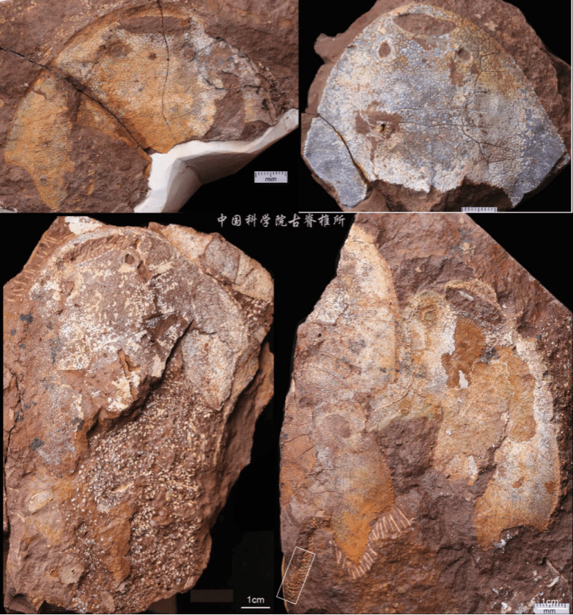 此次发现的武宁西海鱼,展现出独特的“镶嵌”式形态特征。研究显示,该物种具有大庸鱼科典型的三角形头甲和耳状侧角,其头甲中线发育有中背脊,这一特征在更进步的真盔甲鱼目中广泛存在;其中背孔呈横向裂隙形,不同于大庸鱼属的近圆形,反而与外类群汉阳鱼科相似。论文第一作者张雨萌表示,这种“博采众长”的特征组合,使其成为连接不同盔甲鱼类群的“过渡型”物种,为研究盔甲鱼的早期演化提供了重要形态学依据。
