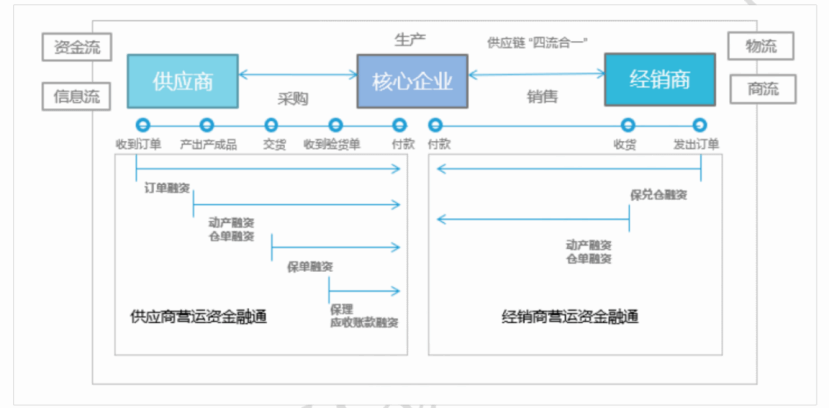 供应链金融是一种基于供应链各环节之间的商业关系而开展的金融服务。它依托供应链网络中的核心企业信用,把银行、上下游中小企业与真实贸易流打通,通过信用嫁接、数据共享与风险共担,为链上各节点注入流动资金与信用增值,最终形成一个共生、共享、共稳的产业金融生态圈。