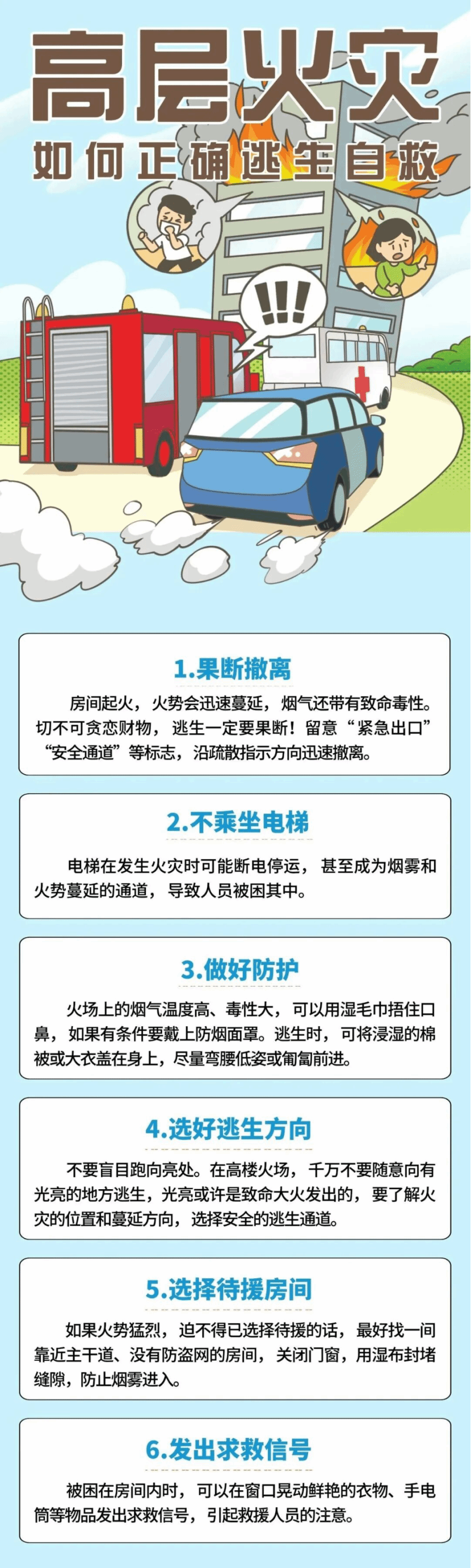 如果火势把通向入户门的路线封住了,应该找一个有外窗的卫生间或者房间,关门堵缝,做好防烟,等待救援。楼下发生火灾:这种情况极其危险,很多人就是在这种情况下盲目逃生而不幸丧生。