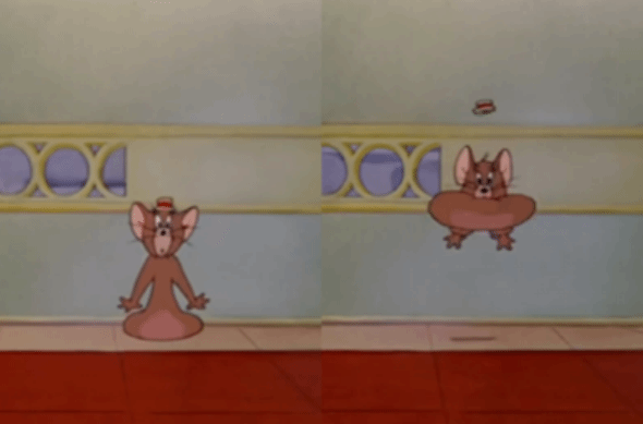 杰瑞在电梯里像气球一样被压扁又弹起,这正是他在经历超重和失重的表现。