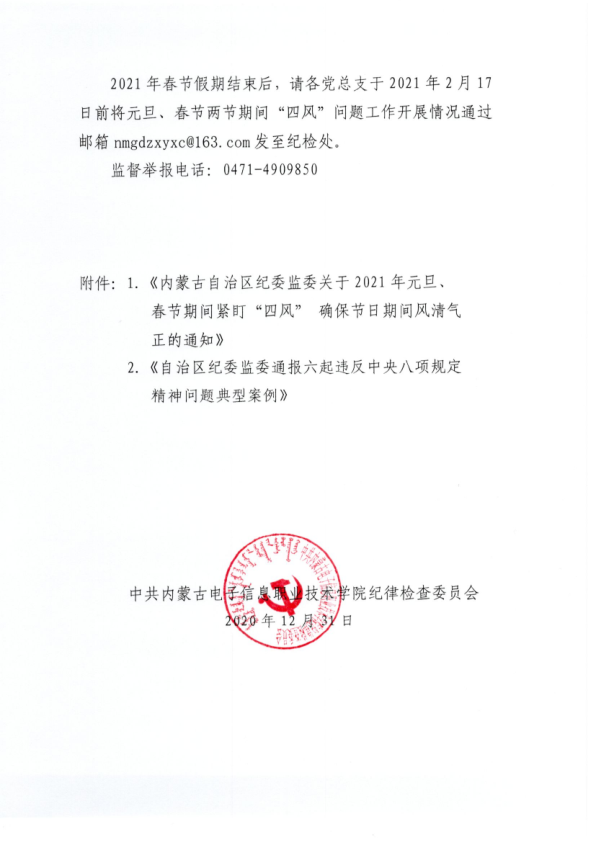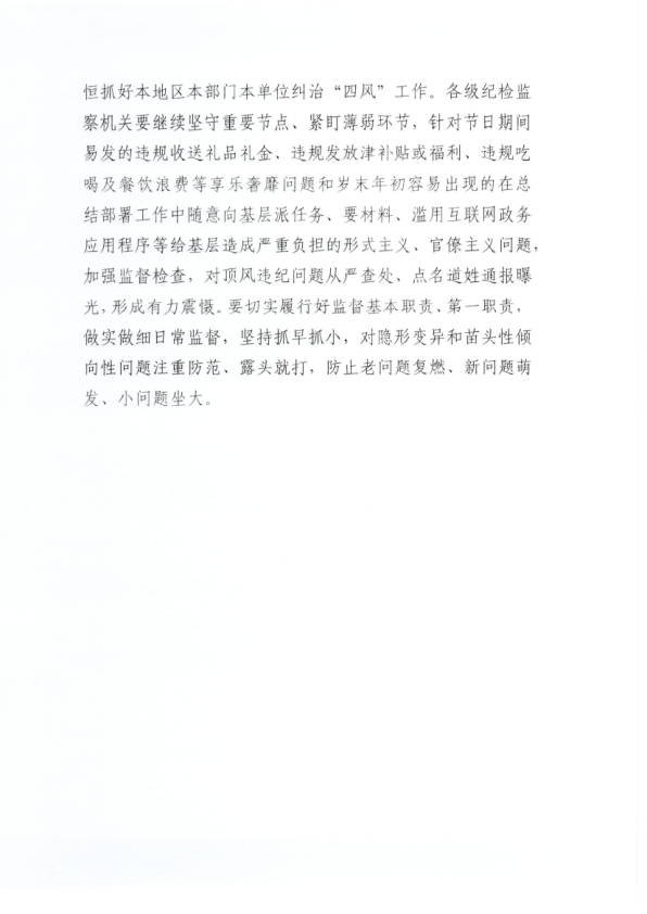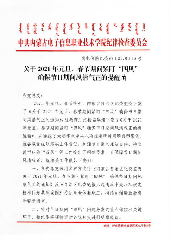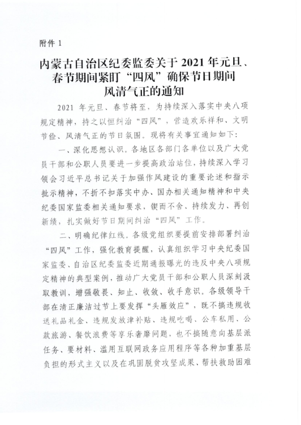 关于2021年元旦、春节期间紧盯“四风”确保节日期间风清气正的提醒函