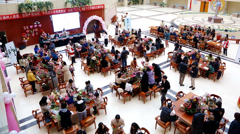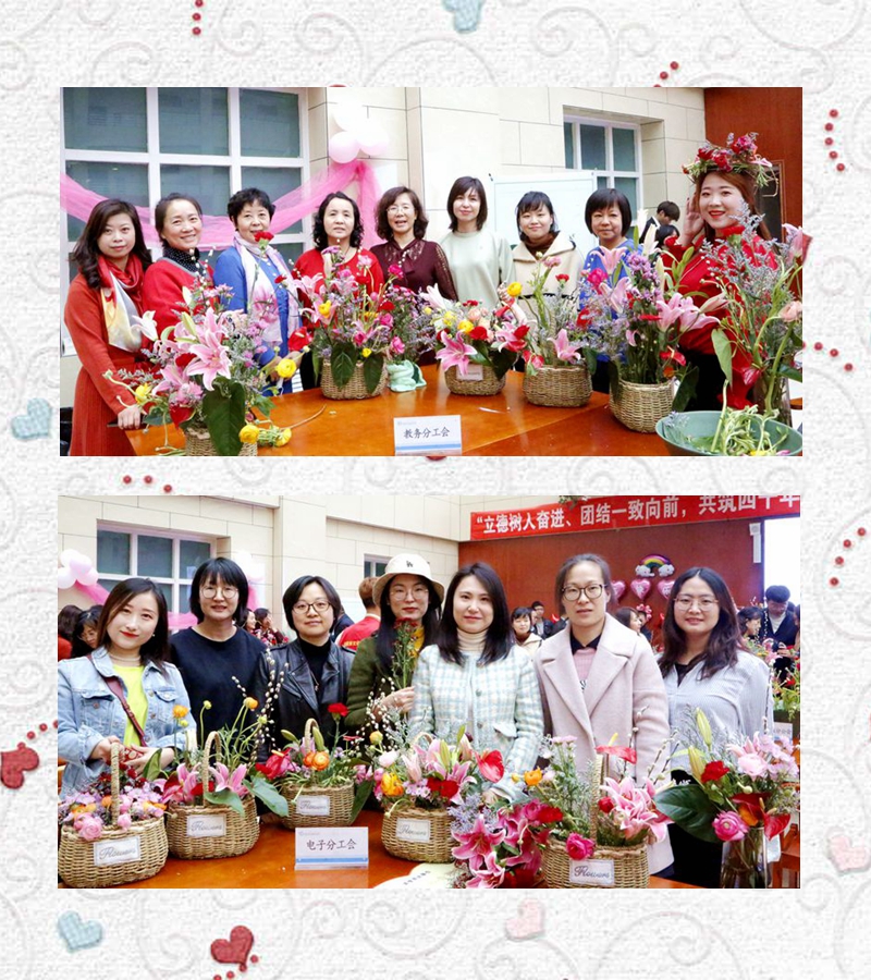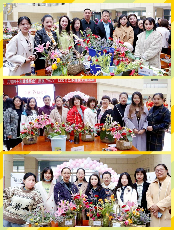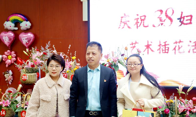 阳春三月,春暖花开。为庆祝建党100周年,喜迎建校40周年,在第111个“三八”妇女节到来之际,3月8日上午,由学校工会和数字媒体与艺术设计学院分工会共同举办庆祝“三八”妇女节艺术花艺活动。校党委委员宣传部部长、工会主席李占岭、校团委书记刘泽利、数字媒体与艺术设计学院副书记张志海及11个分工会主席及百余名女教师参加。活动由宣传部副部长、工会副主席杜健炯主持。