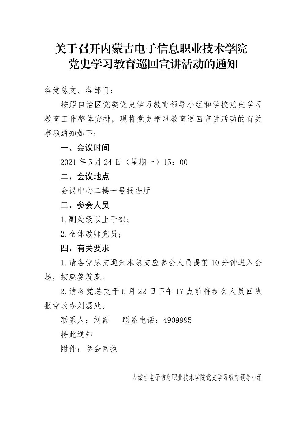 关于召开内蒙古电子信息职业技术学院 党史学习教育巡回宣讲活动的通知
