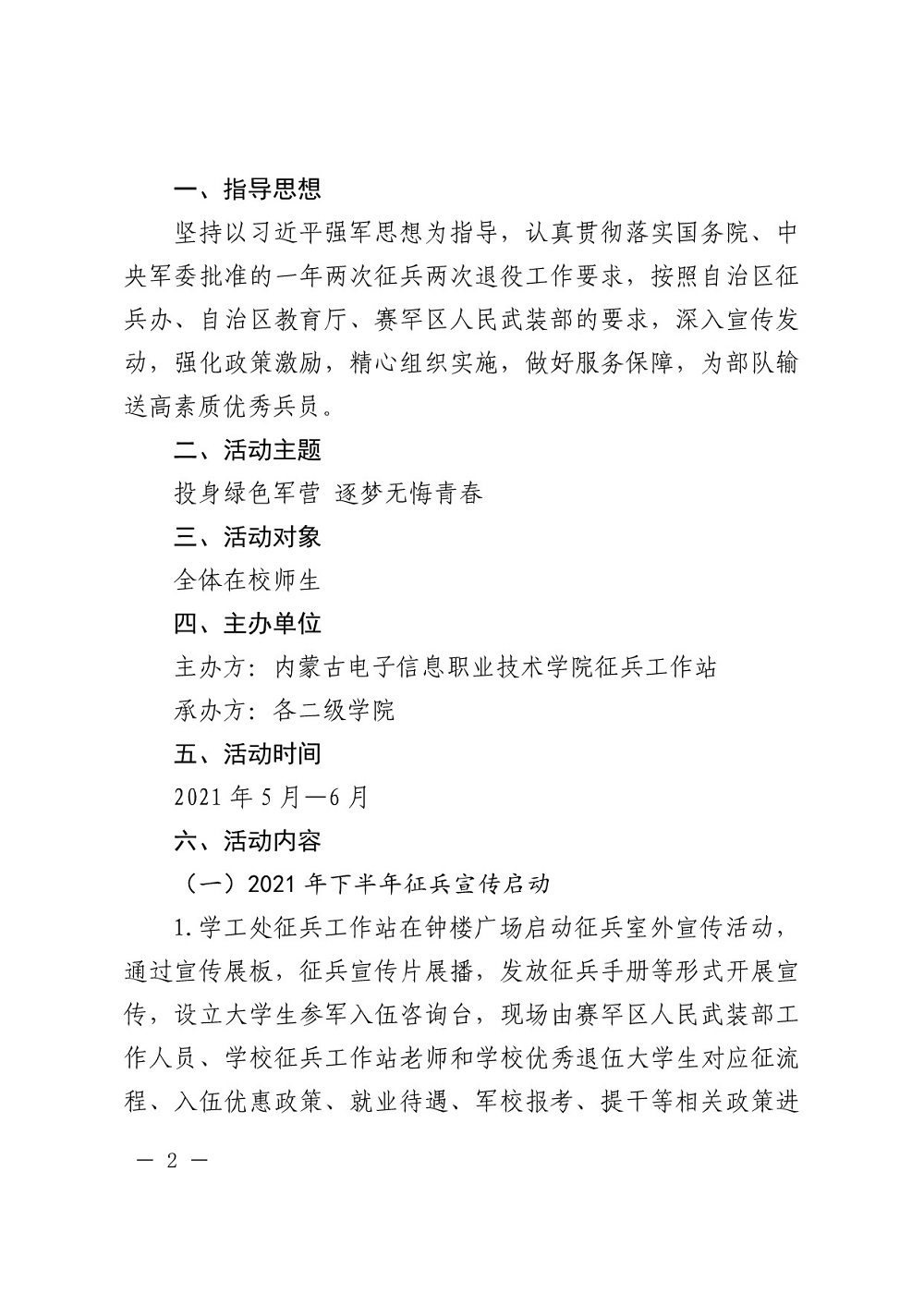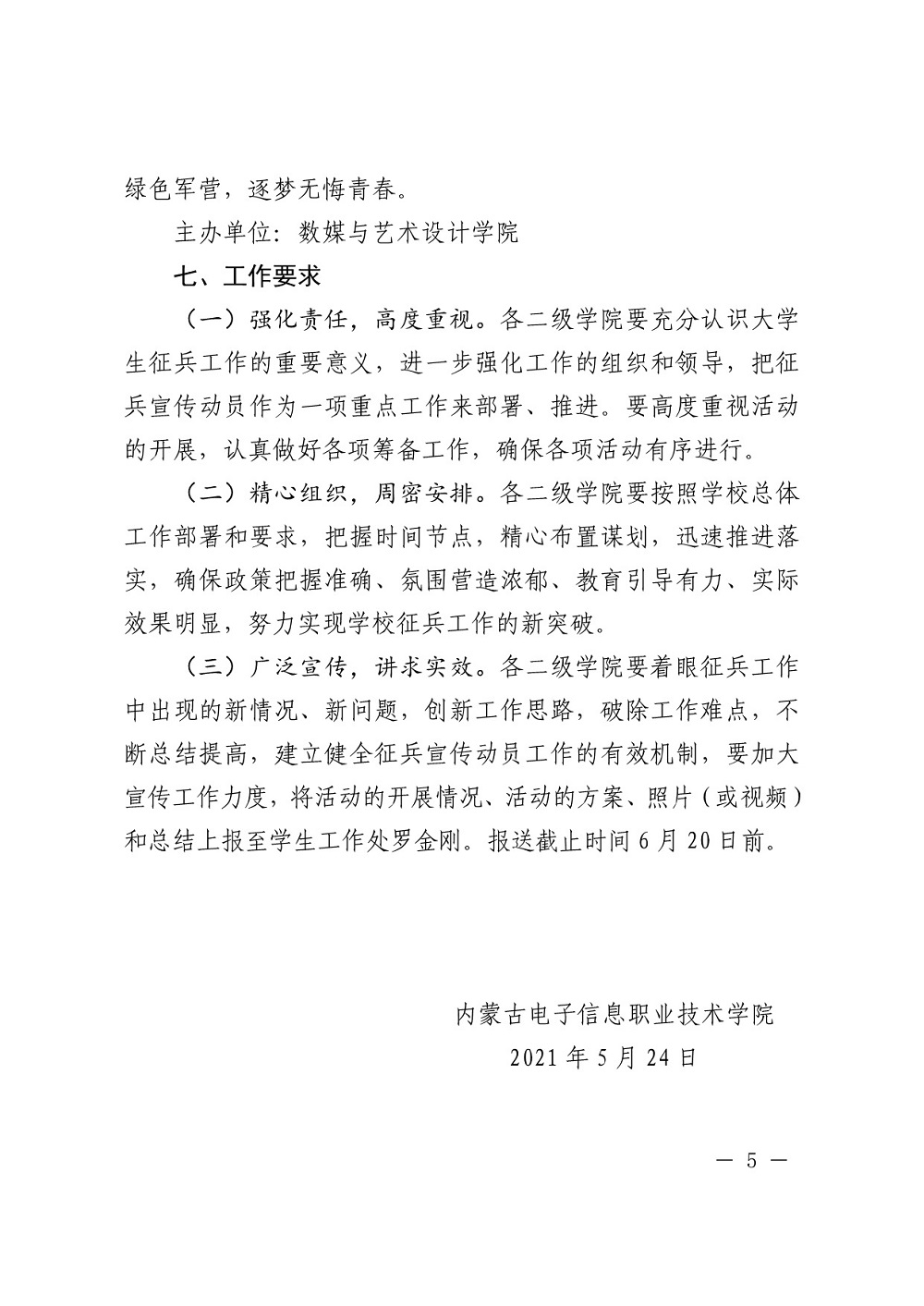 内蒙古电子信息职业技术学院关于开展2021年下半年征兵宣传活动的通知