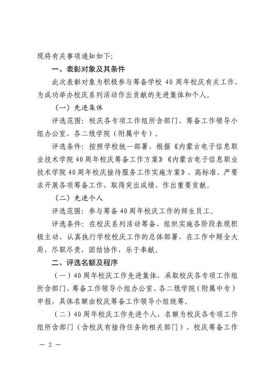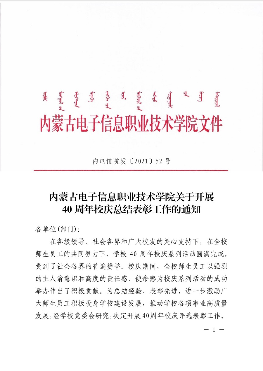 内蒙古电子信息职业技术学院关于开展40周年校庆总结表彰工作的通知