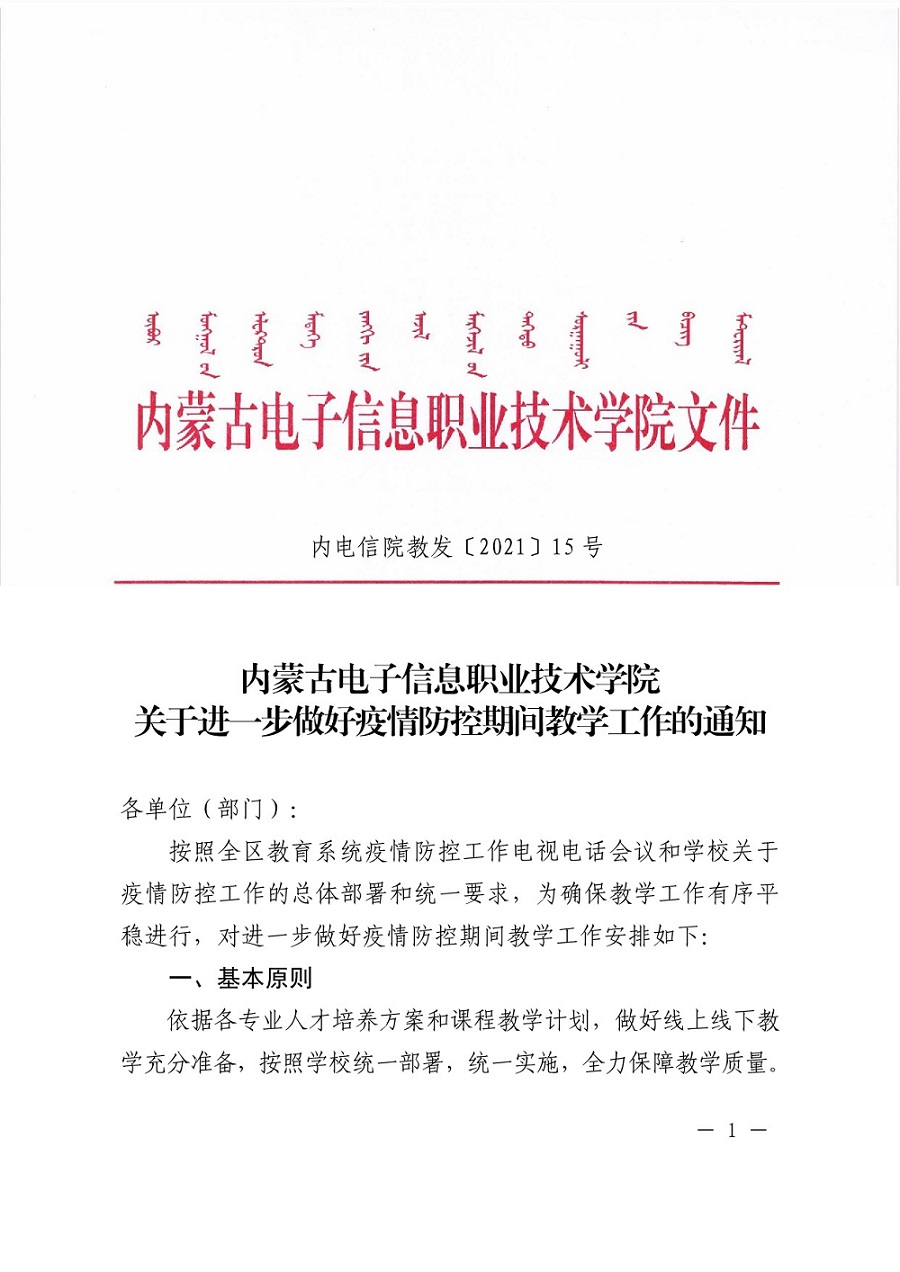 内蒙古电子信息职业技术学院关于进一步做好疫情防控期间教学工作的通知