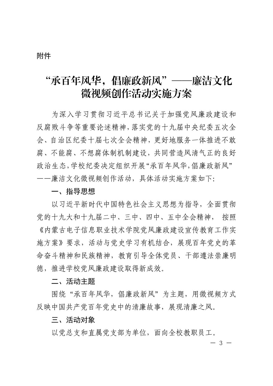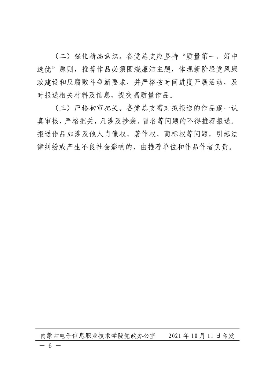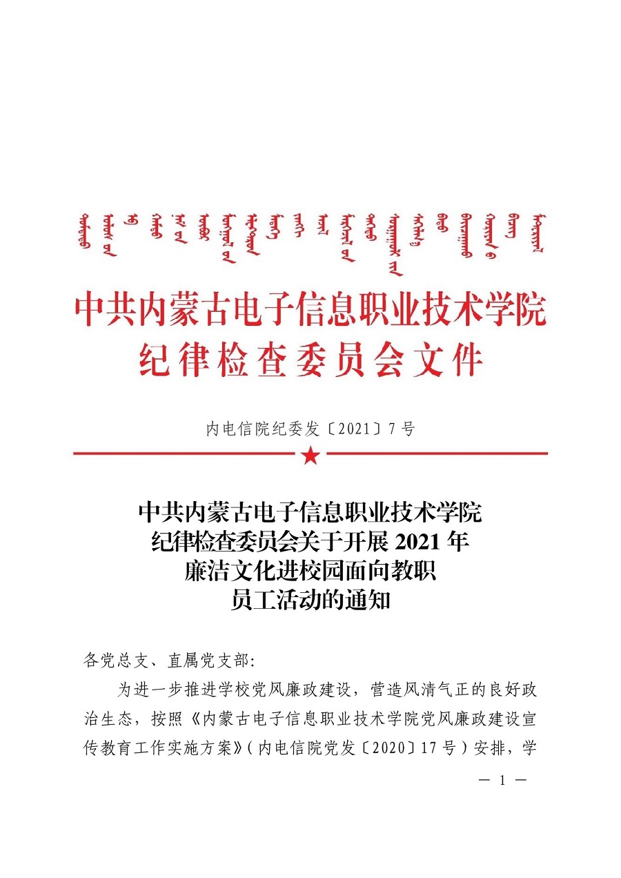 中共内蒙古电子信息职业技术学院纪律检查委员会关于开展2021年廉洁文化进校园面向教职员工活动的通知