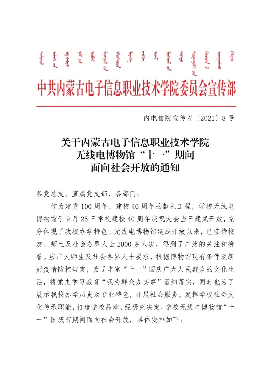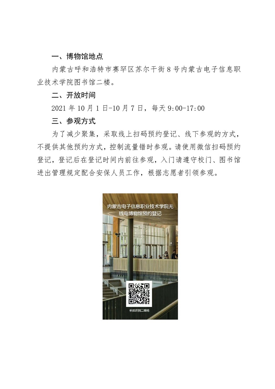 关于内蒙古电子信息职业技术学院无线电博物馆“十一”期间面向社会开放的通知