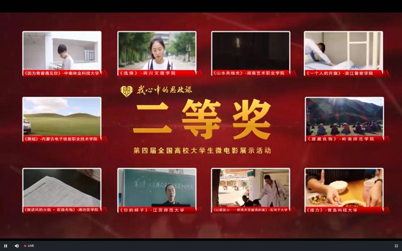 本次微电影展示活动,是高校思政课教学质量年专项工作的重要组成部分,也是高校学生思想政治理论课学习成果展示系列四大主题活动之一。作为首次参加此项比赛的院校,参赛备赛的过程中采取师生组队联合拍摄,以微电影创作为实践教育载体,增强了思政课教育教学的亲和力、吸引力,调动师生的积极性、主动性、创造性。既提升学生对思政课的参与度和获得感,打牢学生成长成才的科学思想基础,也全面拓宽了我校思政课程育人途径。