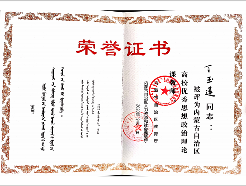 为大力弘扬尊师重教的良好风尚,增强广大教师和教育工作者的荣誉感和责任感,自治区教育厅、人力资源和社会保障厅对2020年自治区教育系统先进集体、先进个人进行了评选和表彰,共评选出“自治区优秀教师”289名、“自治区高校优秀思想政治理论课教师”30名。我校马克思主义与通识教育学院丁玉莲老师获得“自治区高校优秀思想政治理论课教师”荣誉称号,软件与大数据学院赵祯老师获得“自治区优秀教师”荣誉称号。