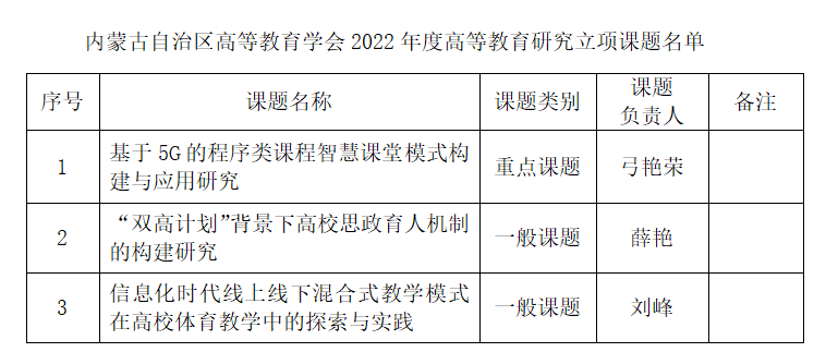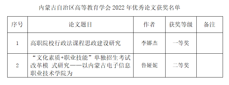 近日,内蒙古自治区高等教育学会公布了2022年度高等教育研究课题立项和2022年度优秀论文获奖结果。我校获批课题立项3项,其中重点课题1项,一般课题2项;获评优秀论文奖2项,一等奖1项,二等奖1项。立项课题和获评优秀论文奖名单如下: