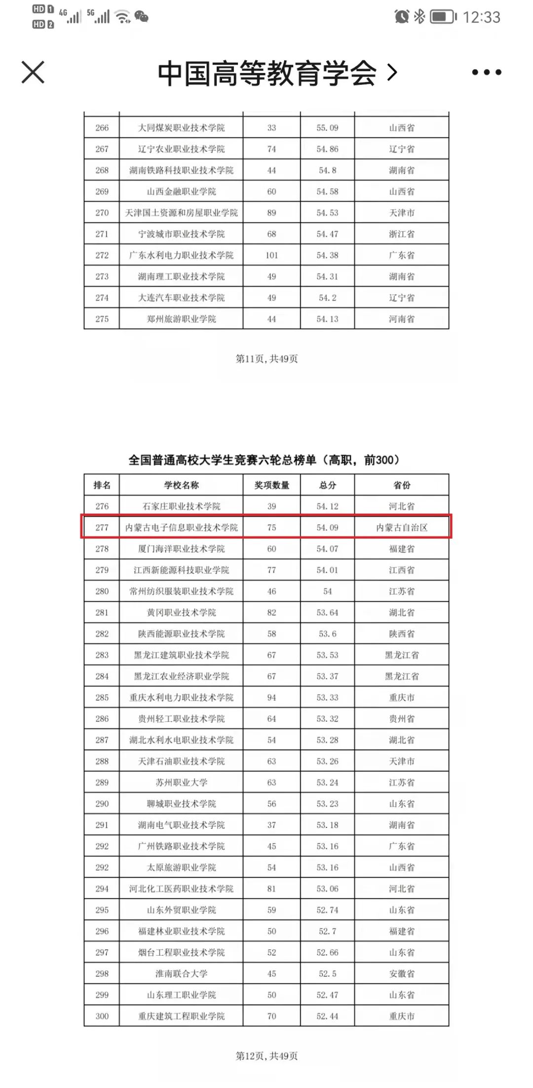 2月22日,中国高等教育学会高校竞赛评估与管理体系研究工作组发布2021全国普通高校大学生竞赛分析报告,其中包含本科院校大学生竞赛榜单13个、高职院校大学生竞赛榜单10个、省份大学生竞赛榜单3个。内蒙古电子信息职业技术学院以75个竞赛奖项入选全国普通高校大学生竞赛六轮总榜单,成为全国前300所、自治区2所入选该榜单的高职院校之一。