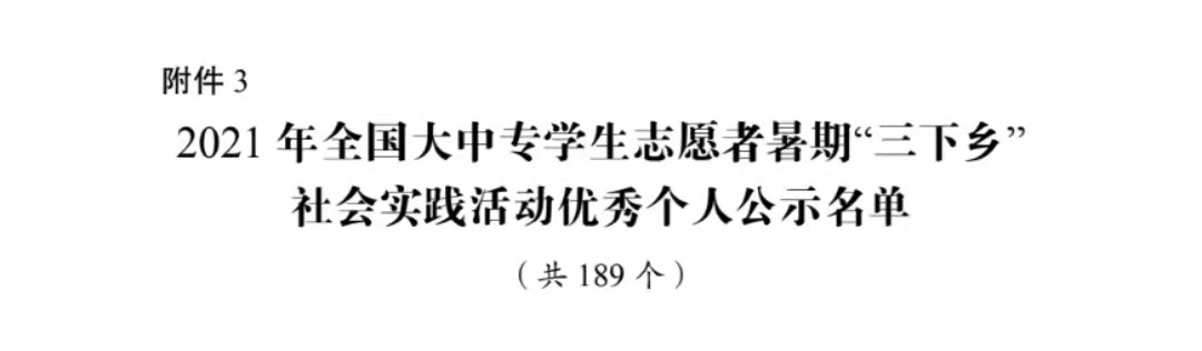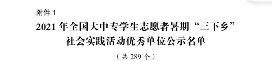 我校团委荣获2021年全国大中专学生志愿者暑期“三下乡”社会实践活动“优秀单位”荣誉称号。