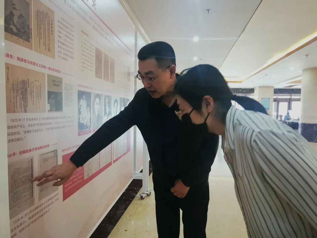9月9日下午,电子商务学院党总支组织全体党员教师赴自治区档案馆参观“百年恰是风华正茂”档案文献展览。自治区档案教育与研究中心主任张国文陪同参观。