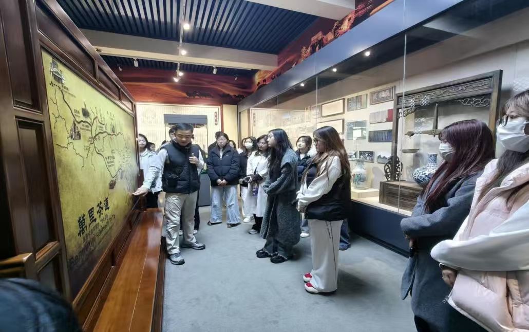 活动伊始,博物馆讲解员以“万里茶道上的商业传奇”为脉络,带领师生们沿着历史走进大盛魁的百年发展历程。从清代康熙年间的小商号起步,到成为横跨欧亚、垄断蒙俄贸易的“草原第一商号”,展厅内的珍贵史料、复原场景与实物展品,生动再现了大盛魁在驼道运输、商品贸易、经营管理等方面的辉煌成就。学生党员们驻足于“驼队出行路线图”前,认真聆听商号凭借诚信经营打通万里商道的故事;在“账册文书展区”,结合自身会计专业知识,细致观察古代商号的记账方式与财务管理智慧,深刻体会到“诚信为本、勤俭经营、协作共赢”的晋神内核。