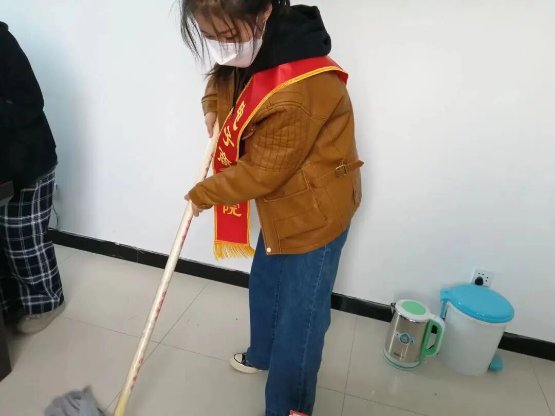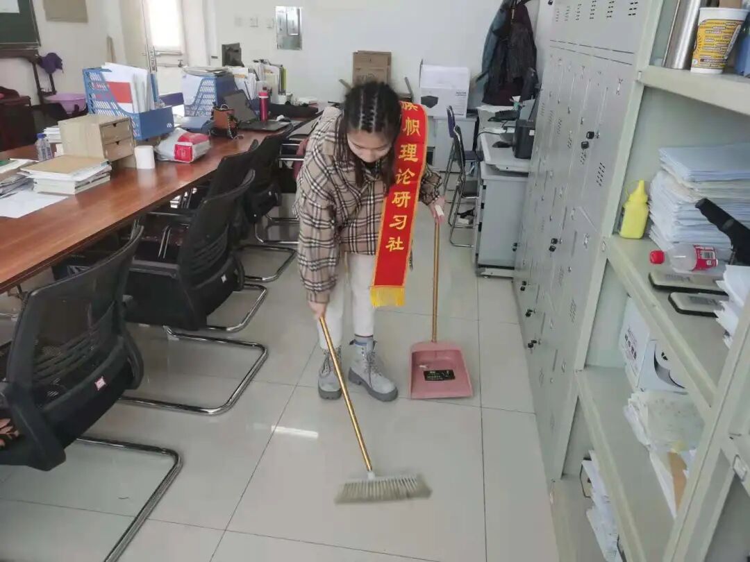 此次清扫活动中,党员和积极分子把教师办公室打扫的干干净净,清扫了同学们上完课在角落留下的垃圾,清理了整层楼所有的垃圾桶,铲掉了地下沉淀已久的泡泡糖印记。在这个过程中大家没有休息也没有抱怨,从始至终认真负责,圆满地完成了这次清扫活动。