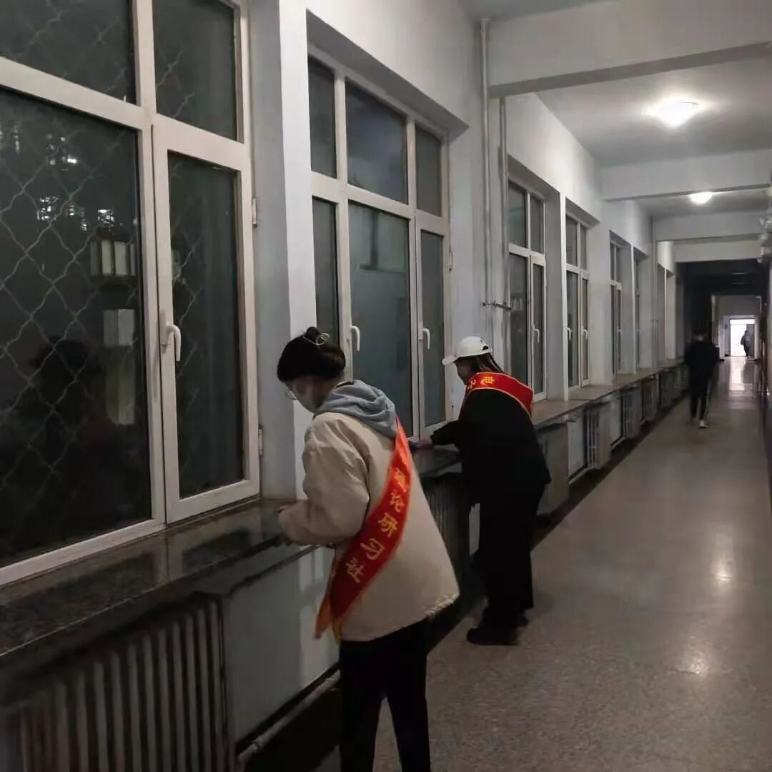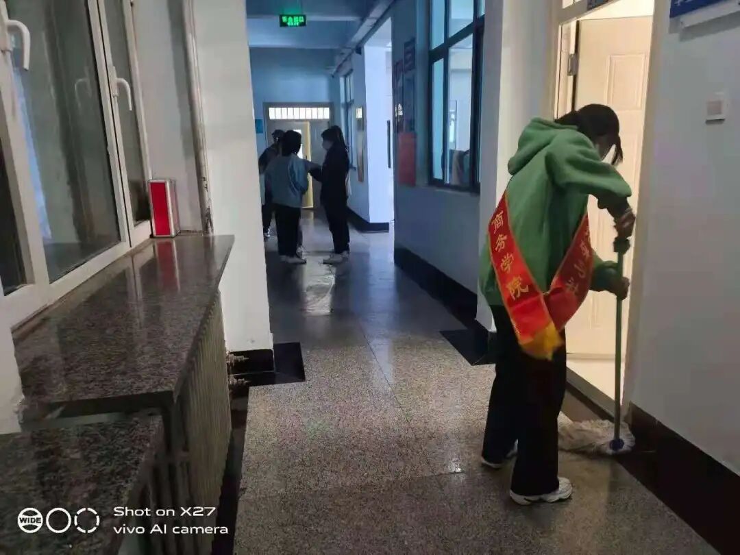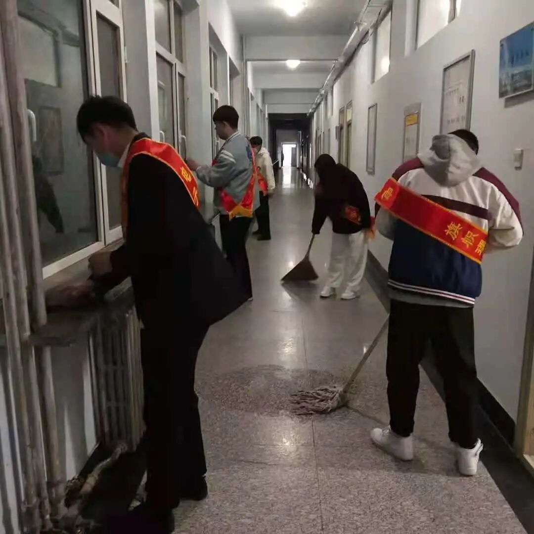 5月6日忽然而来的沙尘暴天气将一切淹没在黄沙之中,教学楼内都被沙子覆盖,电子商务学院学生党支部成员为了减轻“楼妈”阿姨的清扫负担,主动担负起清扫教学楼的任务,将教学楼清扫一新。