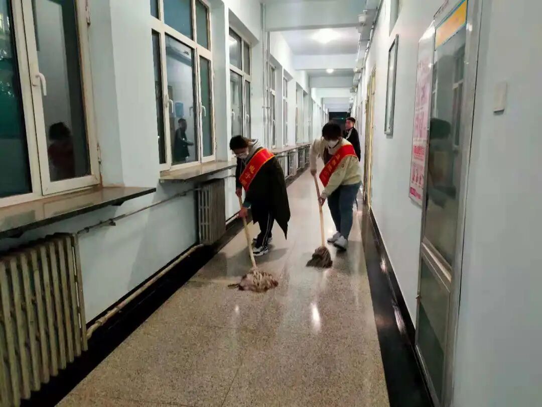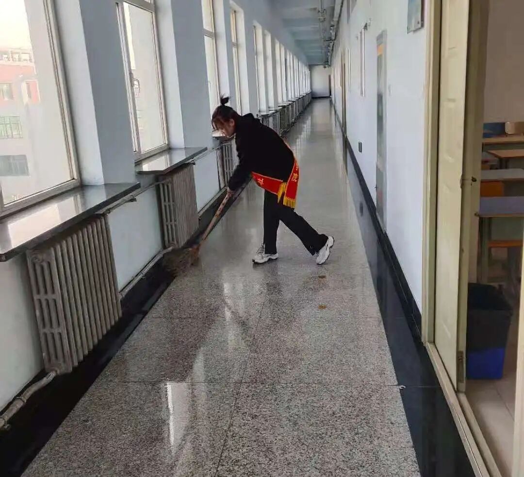 同学们分组进入到各层教学楼的教室,彻底清除卫生死角,室内卫生窗明几净,无灰尘、无杂物、无蜘蛛网、地面干净、桌椅摆放整齐,黑板讲桌干净;室外环境地面无纸屑、果皮、烟头、痰迹、泡泡糖渍等;本次活动大概持续了一个小时,总计49名发展对象参与其中,大家充分发挥不怕脏、不怕累的精神,干得热火朝天。