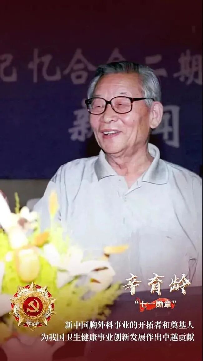 辛育龄,男,汉族,1921年2月生,1939年7月入党,河北高阳县人,1938年参加抗日战争。毕业于中国医科大学,获前苏联医科院副医学博士。我国著名胸外科专家,中日友好医院首任院长、新中国胸外科事业的开拓者和奠基人,曾任北京胸部肿瘤研究所外科主任、副所长。辛育龄把全部精力献给了祖国的医学事业,被誉为“白求恩式的医生”。2021年6月29日,中共中央授予辛育龄“七一勋章”。