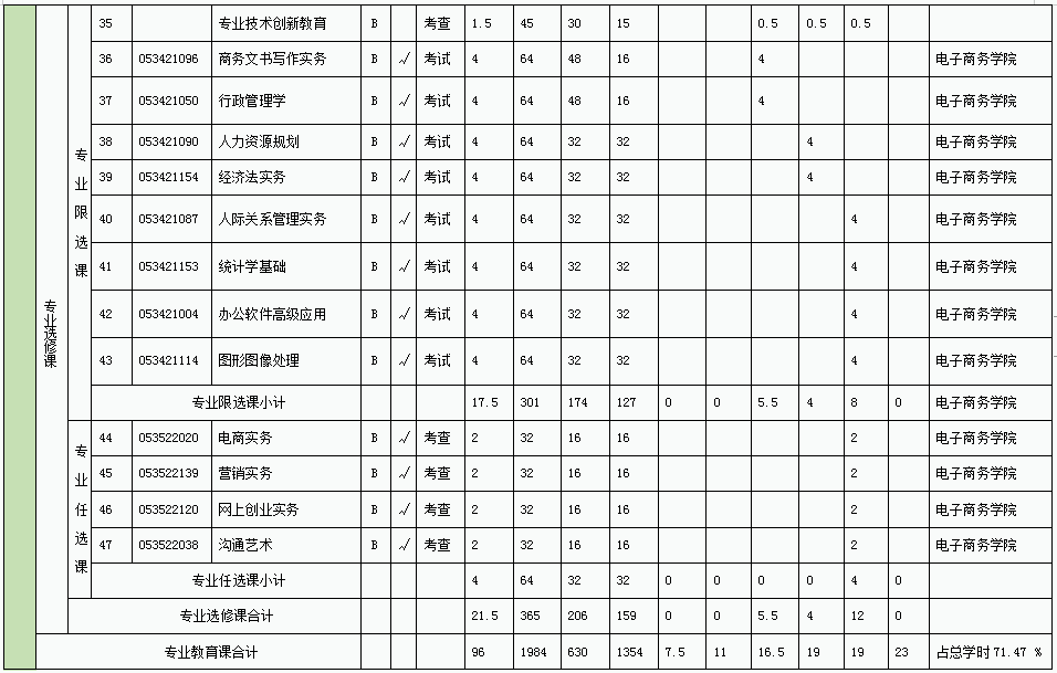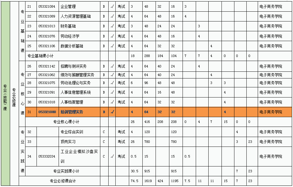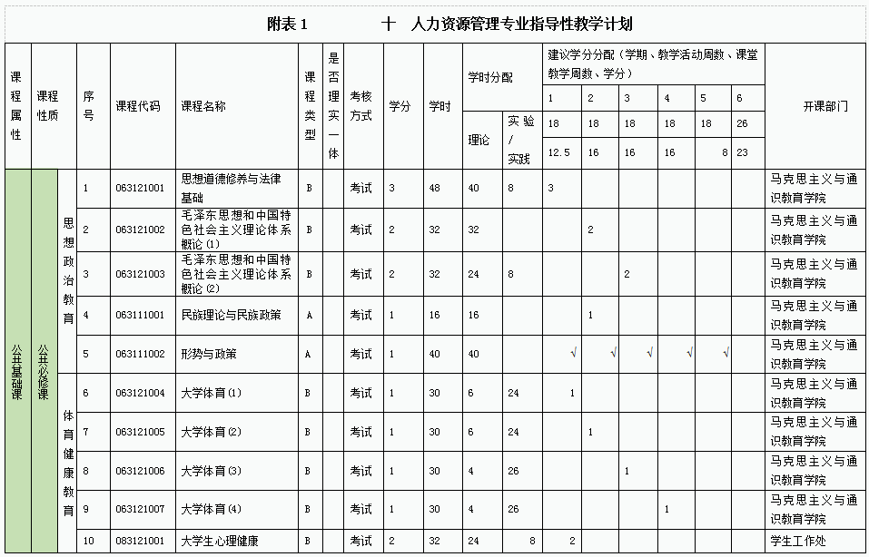 人力资源管理(信息化方向)专业指导性教学计划如附表1所示。