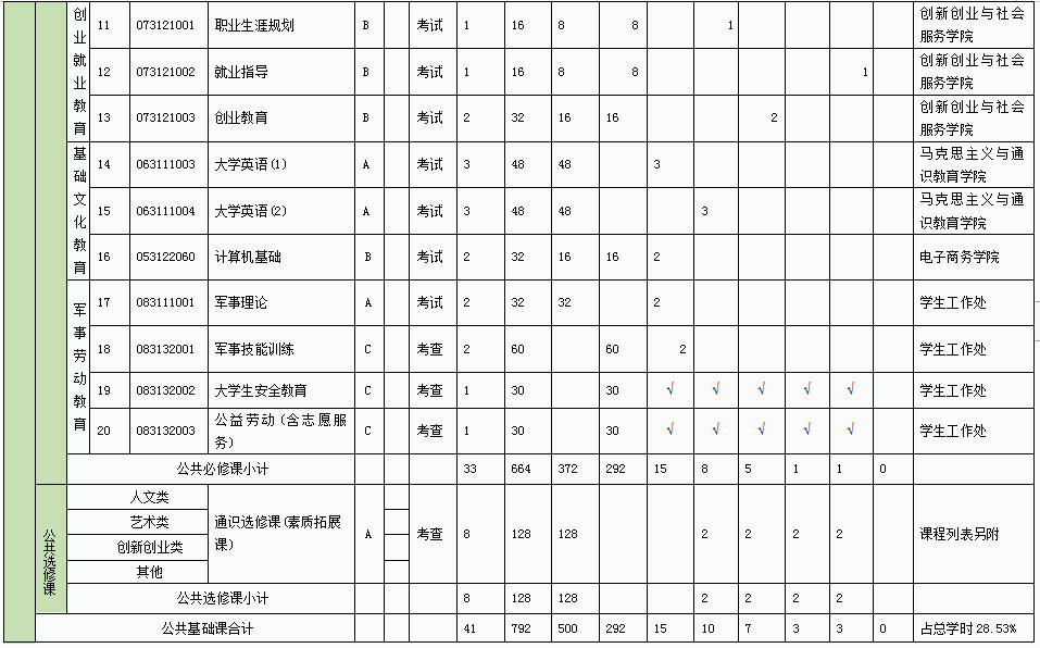 高等职业院校要坚持育人为先,德育为先,把立德树人作为根本任务。根据这一原则,本专业培养任务把培养学生的人文素养、职业道德、就业能力放在首位。通过公共必修课和公共选修课的设置来体现这一理念。